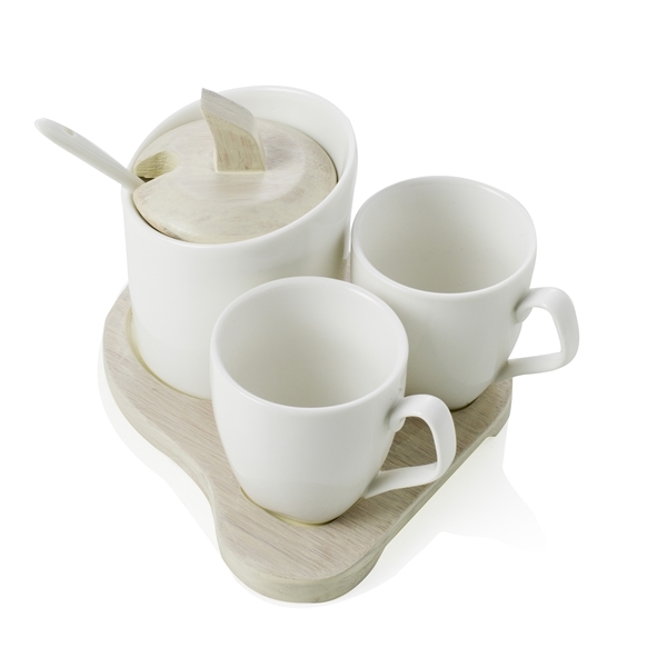 Coffe set square 3 pz porcellana bianca/vassoio